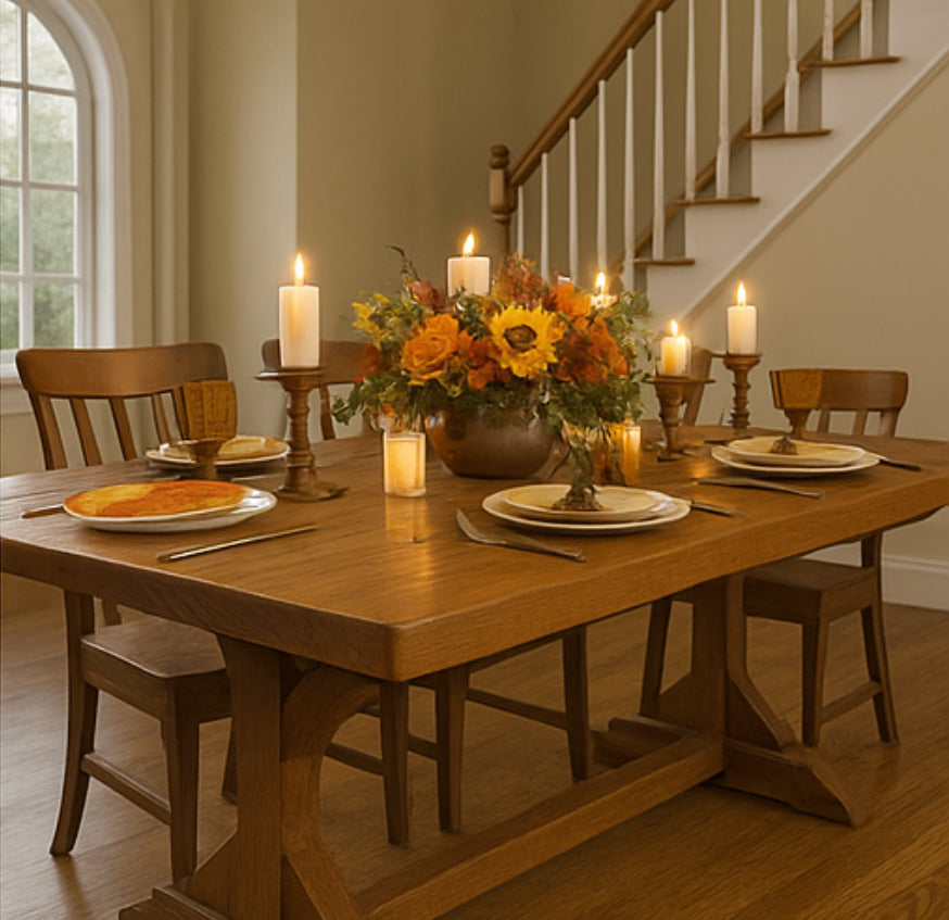 At The Wooden Whale Workshop, every piece is built from solid wood — never veneers — and finished by hand using commercial-grade, food-safe materials designed to stand up to real life. Whether you’re gathering for family dinners or morning coffee, your furniture should be as strong and beautiful as the memories you make around it.